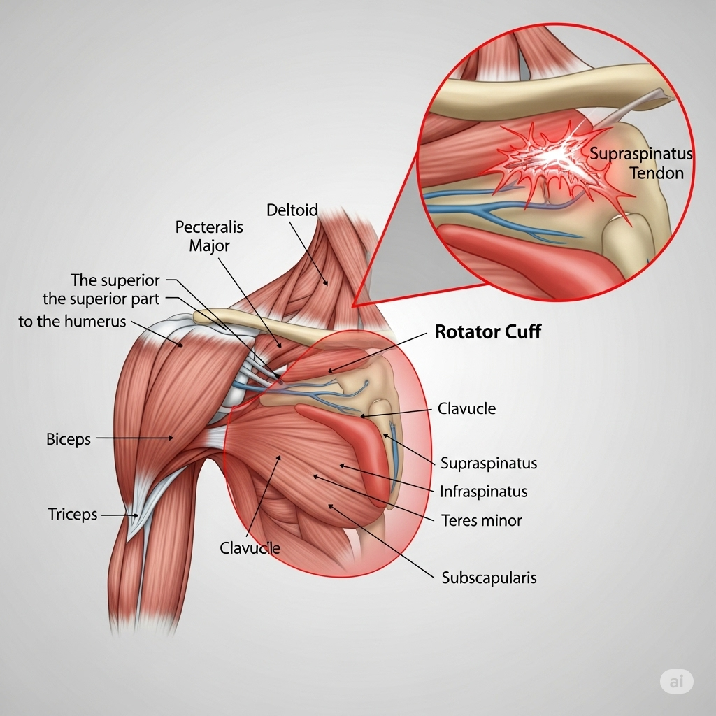회전근개는 어깨 관절을 둘러싸고 있는 네 개의 근육과 그 힘줄로 구성된 구조입니다. 이 부위에 염증이나 손상이 생기면 '회전근개 건병증'이라고 불리는 상태가 됩니다. 이 질환은 어깨를 움직일 때 심한 통증을 유발하고, 팔을 들어 올리기 어렵게 만들어 일상생활에 큰 지장을 줍니다.